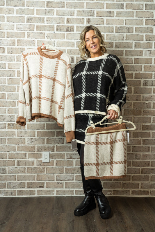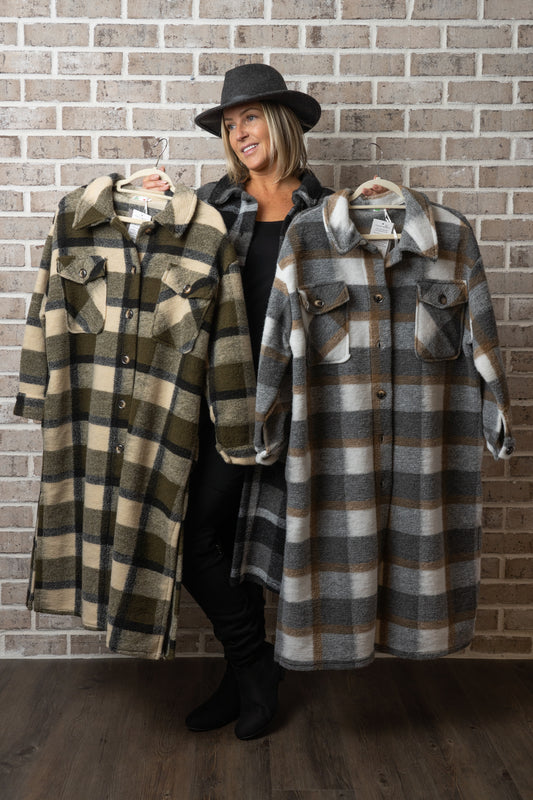 C/B PLAID KNIT DUSTER JACKET
